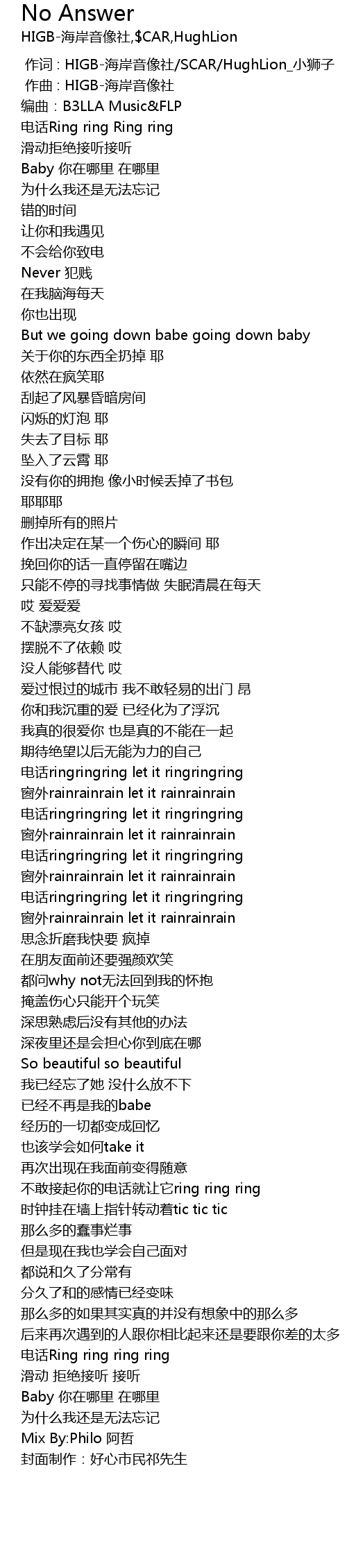 | [02:03.077] | 电话ringringring let it ringringring |