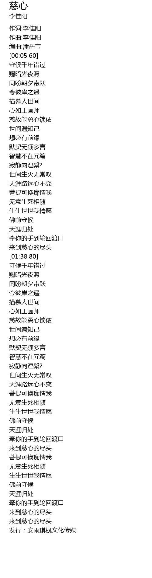 | [03:34.29] | lái dào cí xīn de jìn tóu |