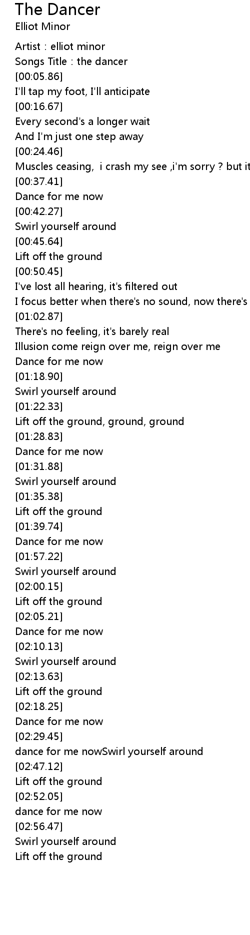 | [00:04.06] | Songs Title: the dancer |
