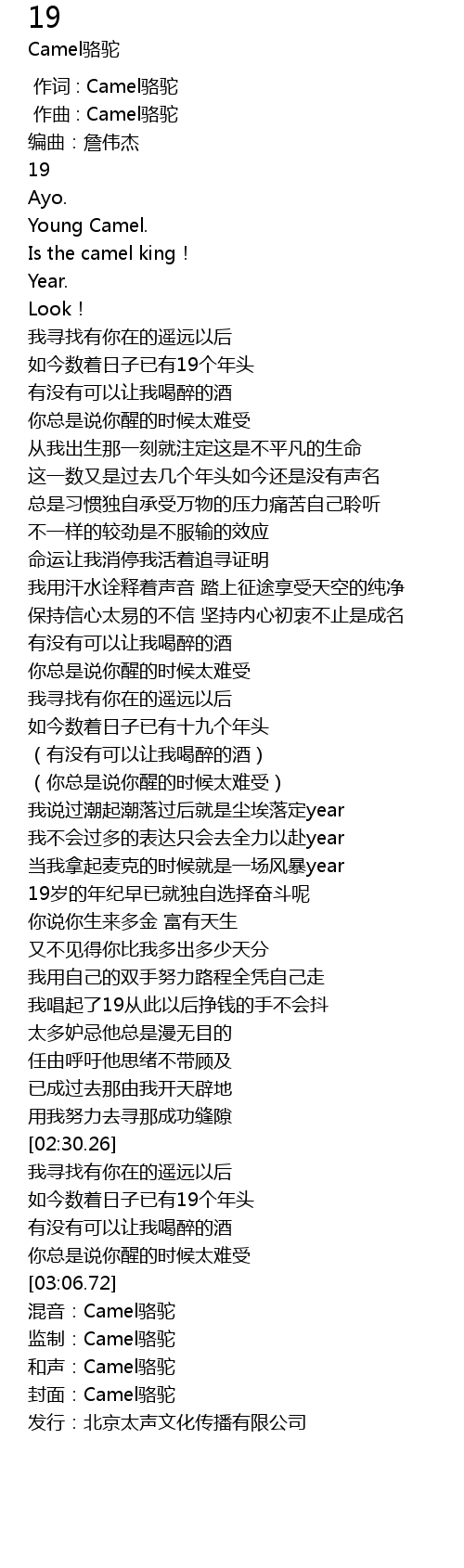 | [03:20.00] | 混音:Camel骆驼 |