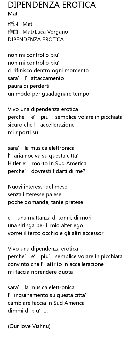 | 歌曲 | DIPENDENZA EROTICA |