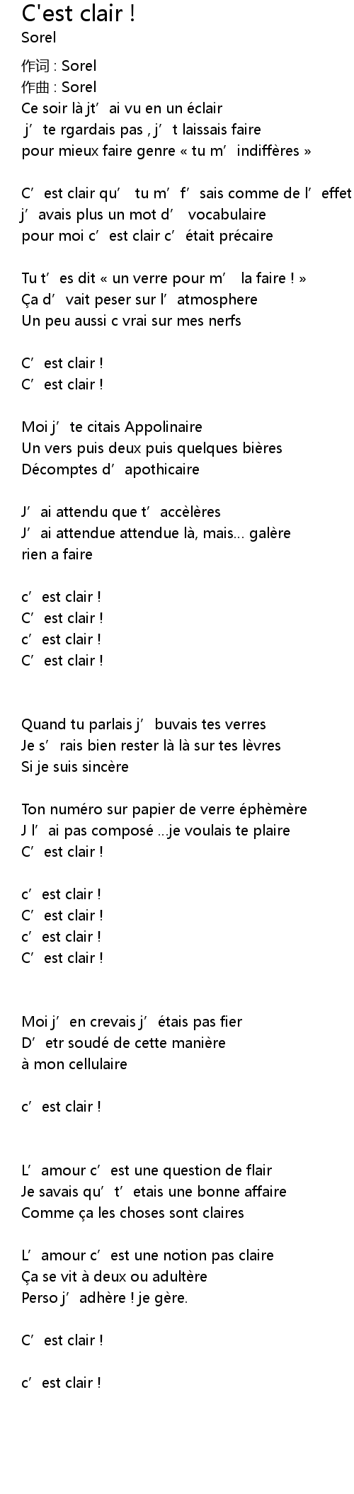 | 歌曲 | C'est clair ! |