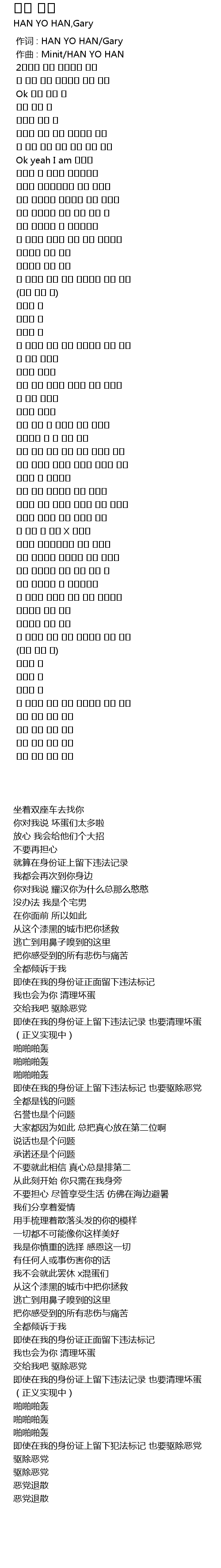 | [00:00.000] | 作词 : HAN YO HAN/Gary |