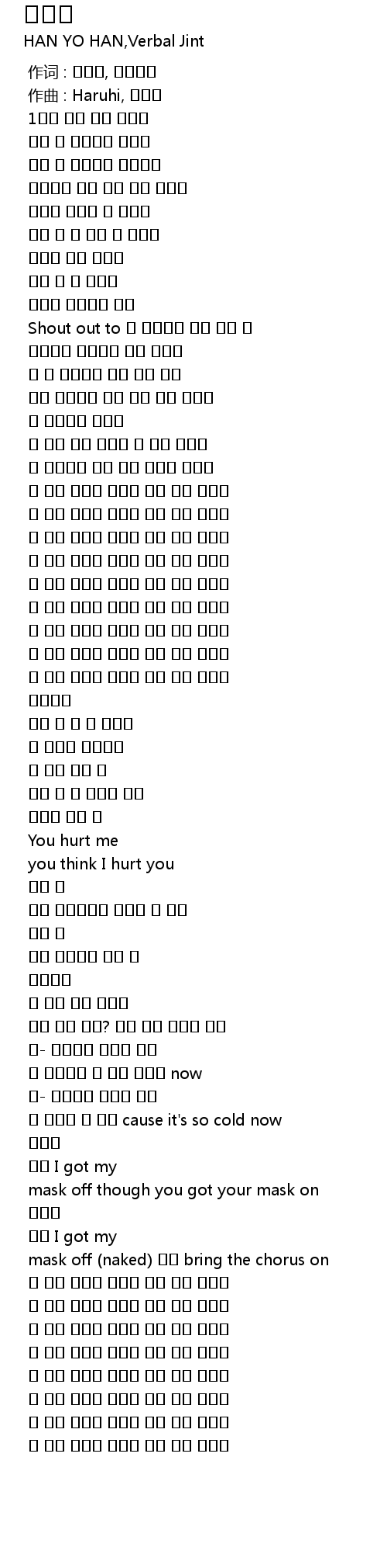 | [02:14.000] | mask off (naked) 요한 bring the chorus on |
