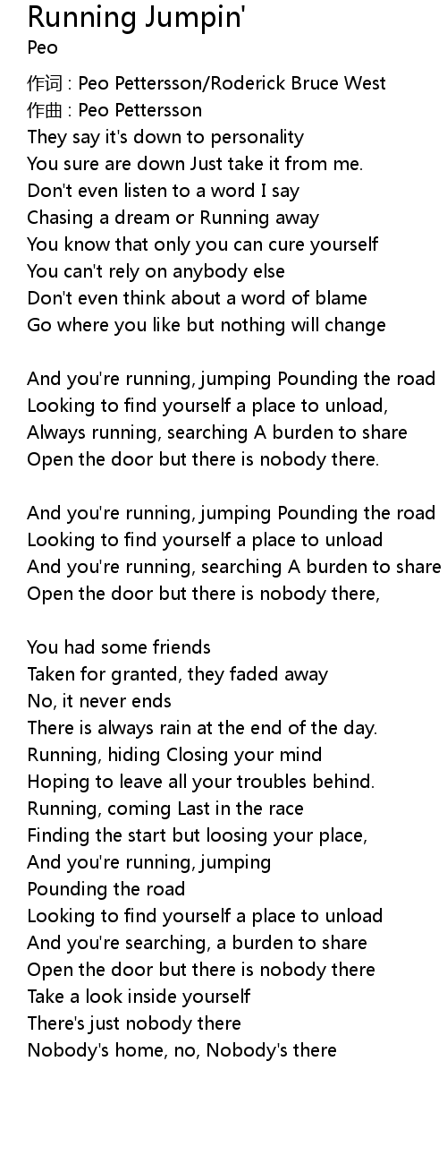 | And you're running, jumping Pounding the road | |