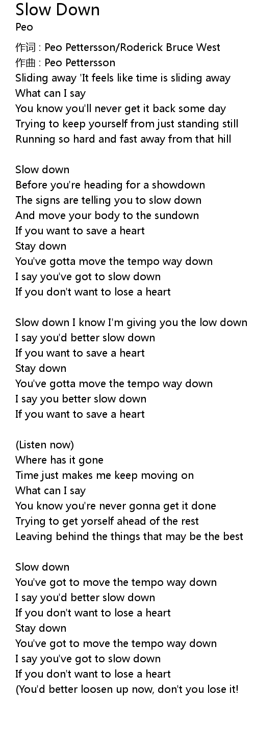 | I say you've got to slow down | |