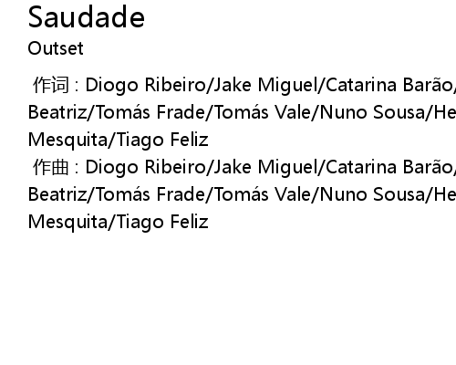 | [00:00.000] | zuo qu : Diogo Ribeiro Jake Miguel Catarina Bar o Maria Beatriz Toma s Frade Toma s Vale Nuno Sousa Henrique Destoop Bruno Mesquita Tiago Feliz |