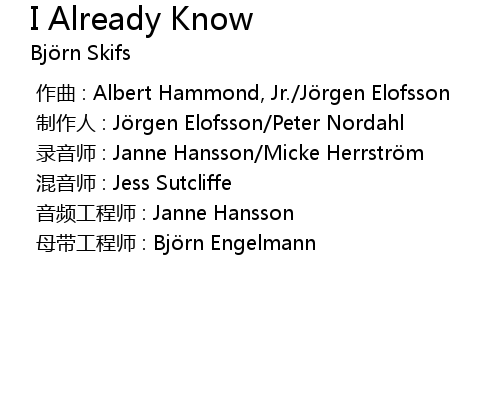| 歌曲 | I Already Know |