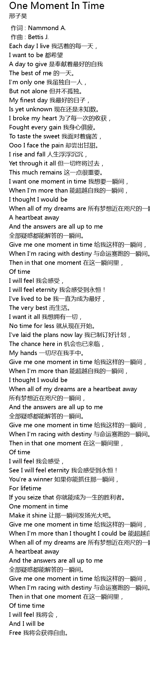 | [03:23.84] | Give me one moment in time 给我这样的一瞬间, |