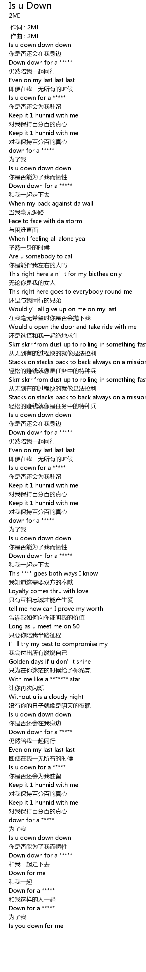 | 歌曲 | Is u Down |