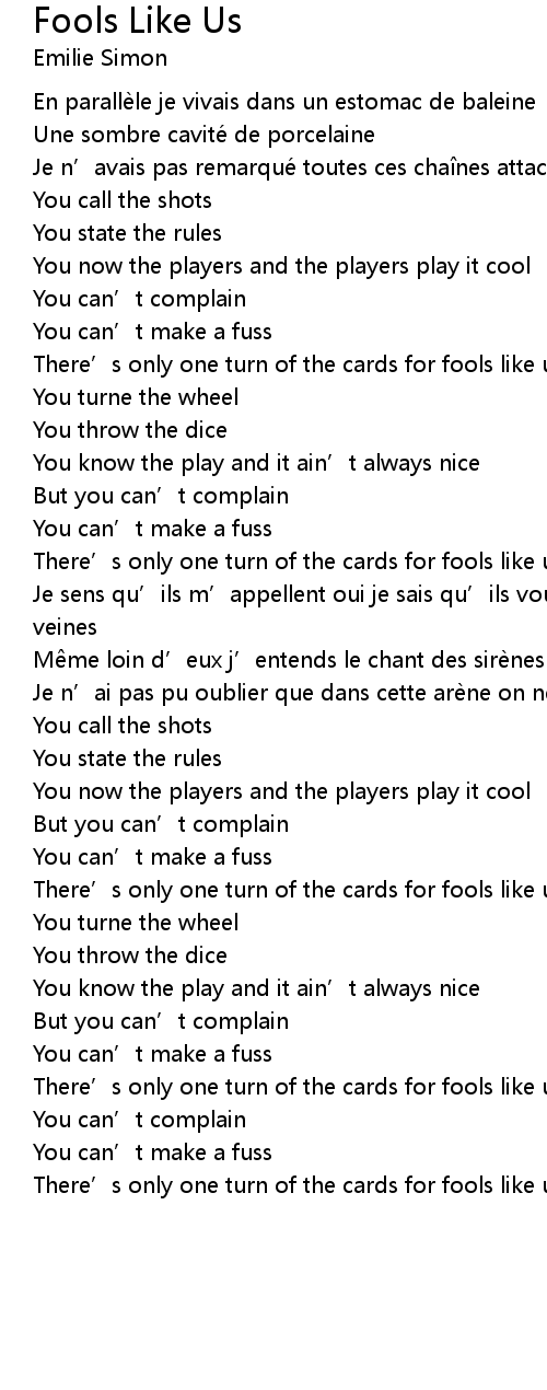 | There’s only one turn of the cards for fools like us |