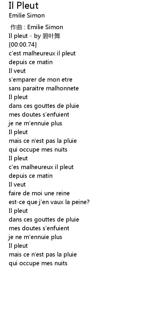 | [00:00.00] | Il pleut by bi ye wu |