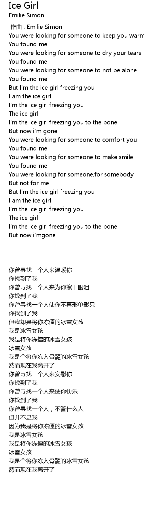 | [00:47.530] | I am the ice girl |