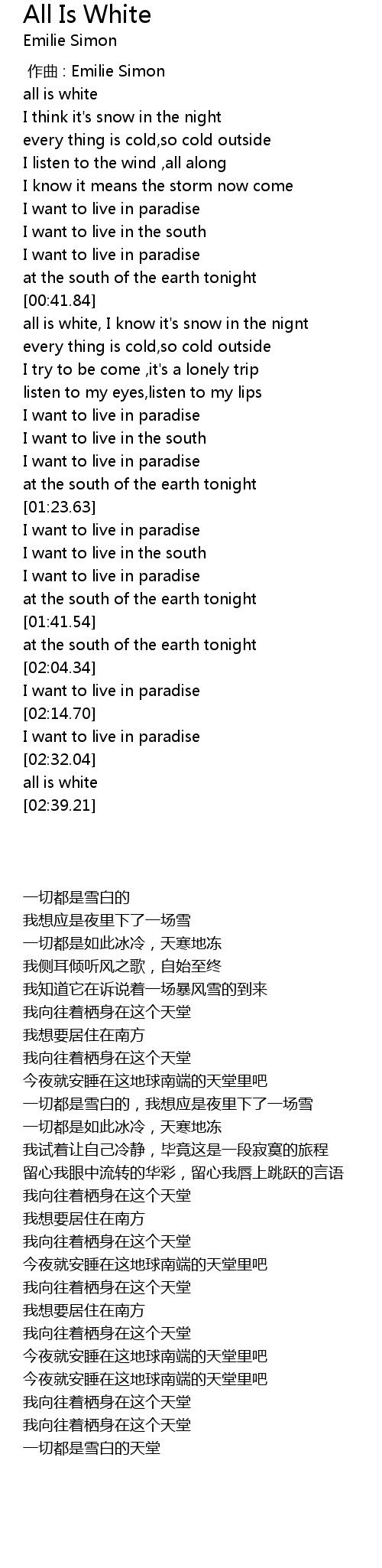 | [02:35.26] | 一切都是雪白的天堂 |
