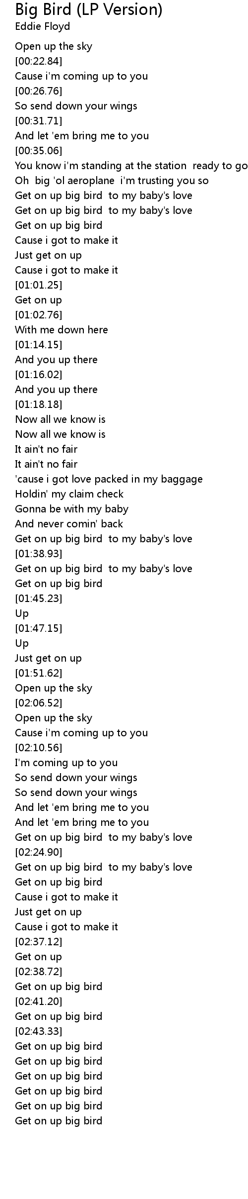 [02:25.51] Get on up big bird to my baby's love