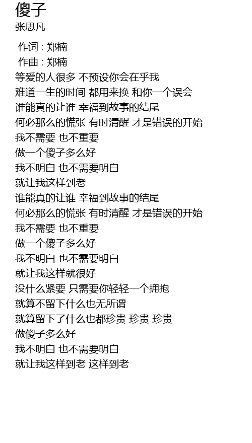 | [02:03.264] | 做一个傻子多么好 |