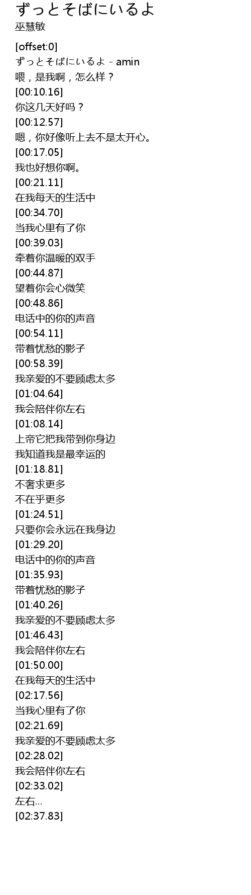 | [00:00.81] | ずっとそばにいるよ - amin |