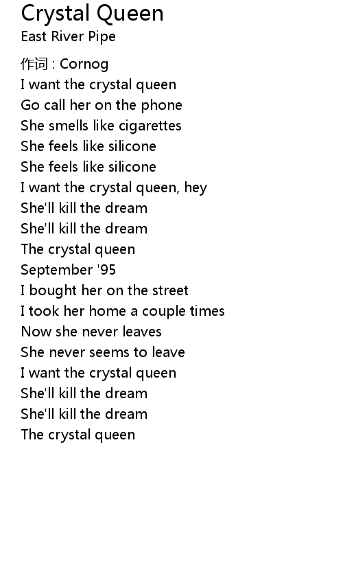 | I want the crystal queen, hey | |
