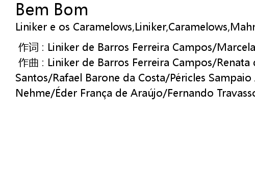 | [00:00.000] | zuò qǔ : Liniker de Barros Ferreira Campos Renata da Silva Santos Rafael Barone da Costa Pé ricles Sampaio Zuanon William Zaharanzski Marja NehmeÉ der Fran a de Araú jo Fernando Travassos Falcoski |