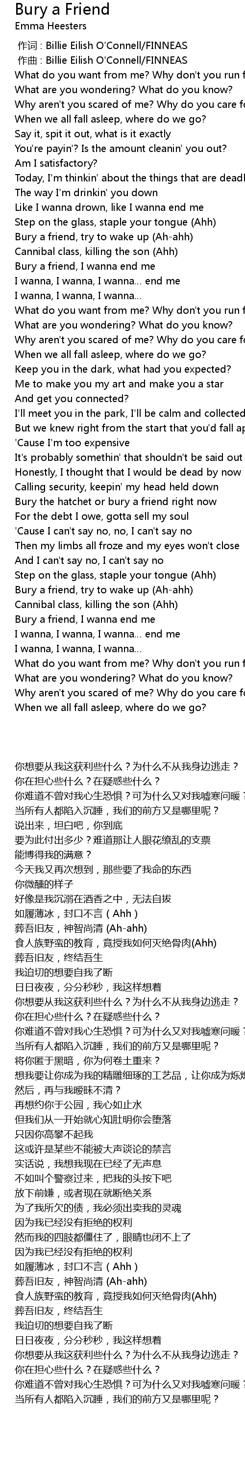 | [00:45.98] | Bury a friend, I wanna end me |