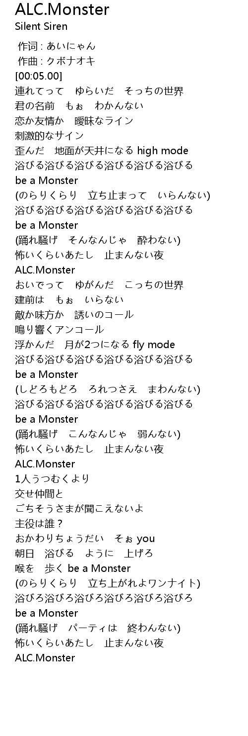 | [00:37.23] | 歪んだ 地面が天井になる high mode |