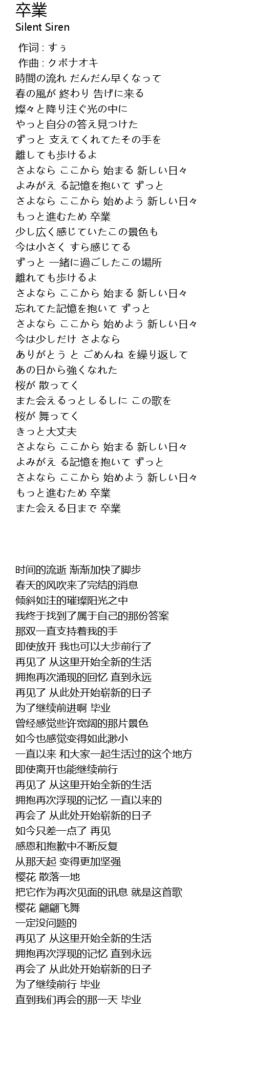 | [01:13] | さよなら ここから 始めよう 新しい日々 |