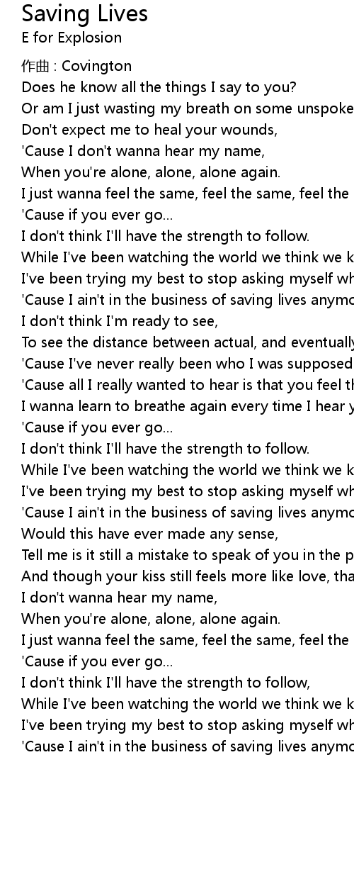 | 歌曲 | Saving Lives |