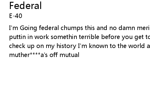 | I'm Going federal chumps this and no damn mericial ****in up it like that | |