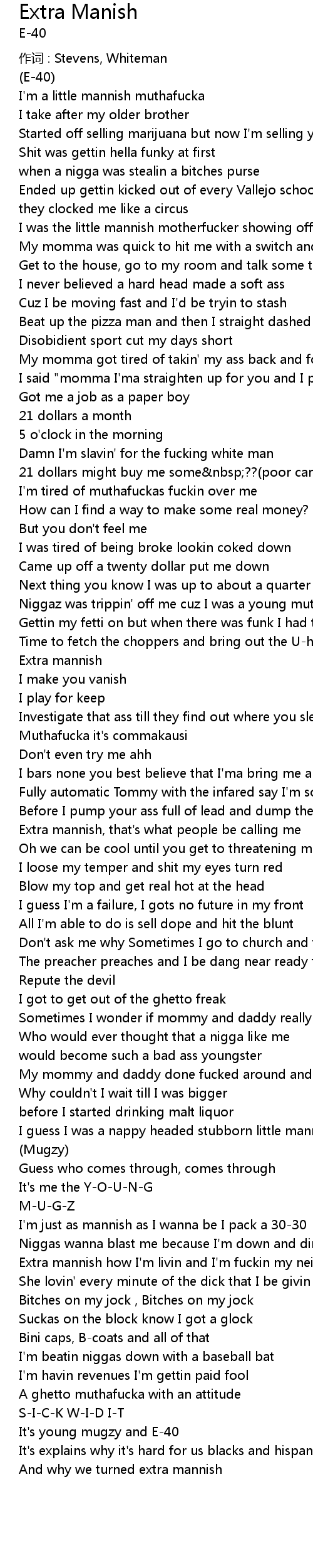 | Extra mannish how I' m livin and I' m fuckin my neighbors bitch an | |