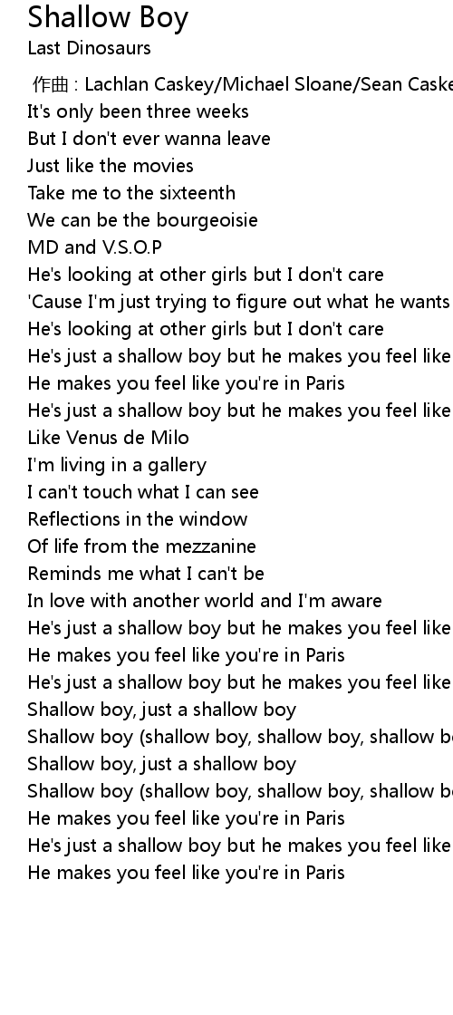 | [02:14.53] | Shallow boy (shallow boy, shallow boy, shallow boy) |