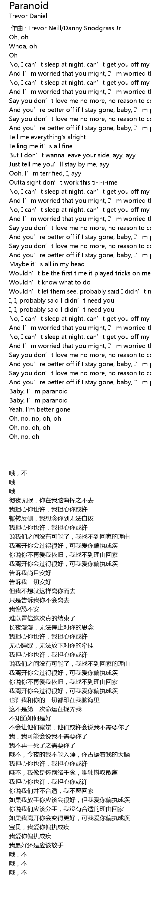 | [02:34.75] | And you' re better off if I stay gone, baby, I' m paranoid |