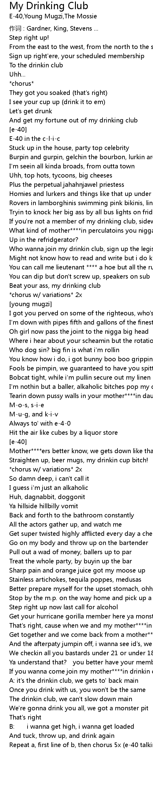 | If you wanna come join my mother****in drinkin club, understand that bitch? | |