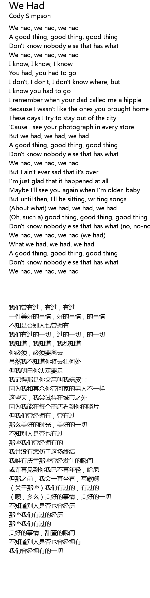 (About what) we had, we had, we had |