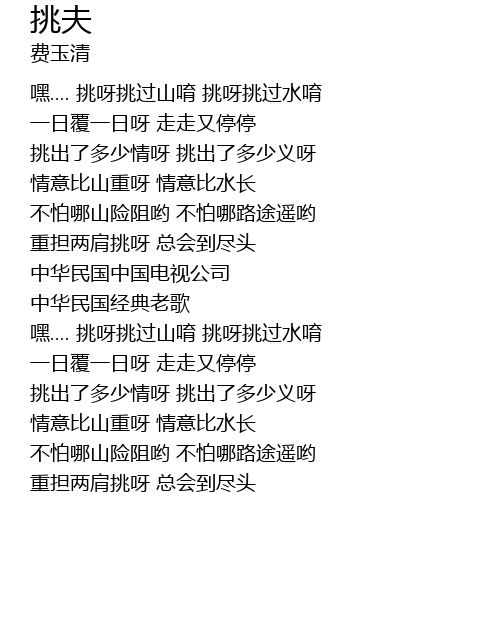 | [00:22.62] | 嘿.... 挑呀挑过山唷 挑呀挑过水唷 |