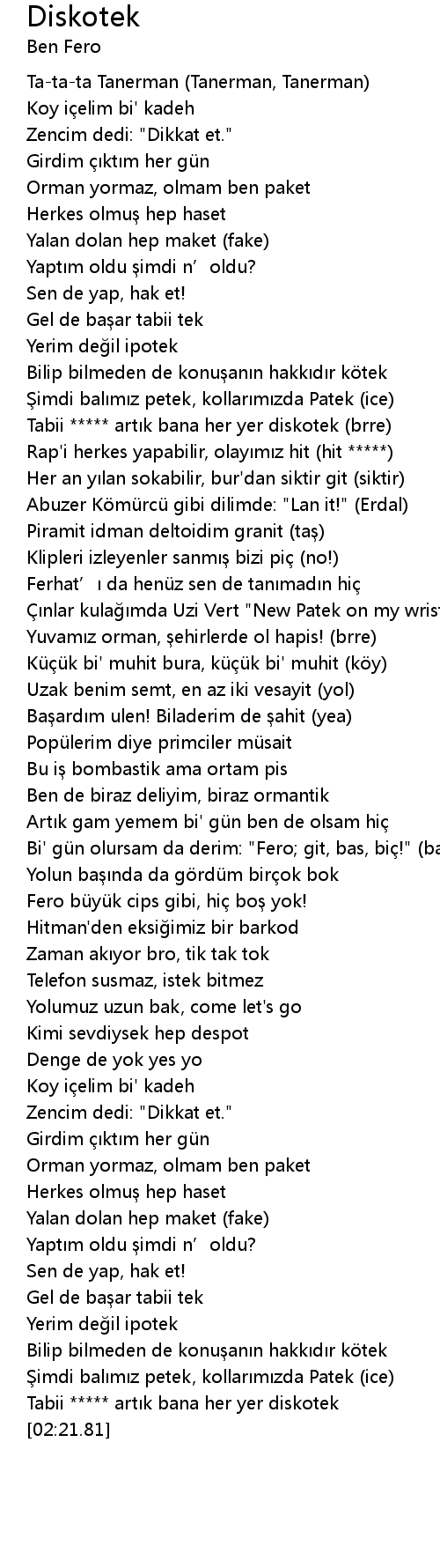 | [02:17.97] | Tabii ***** artık bana her yer diskotek |