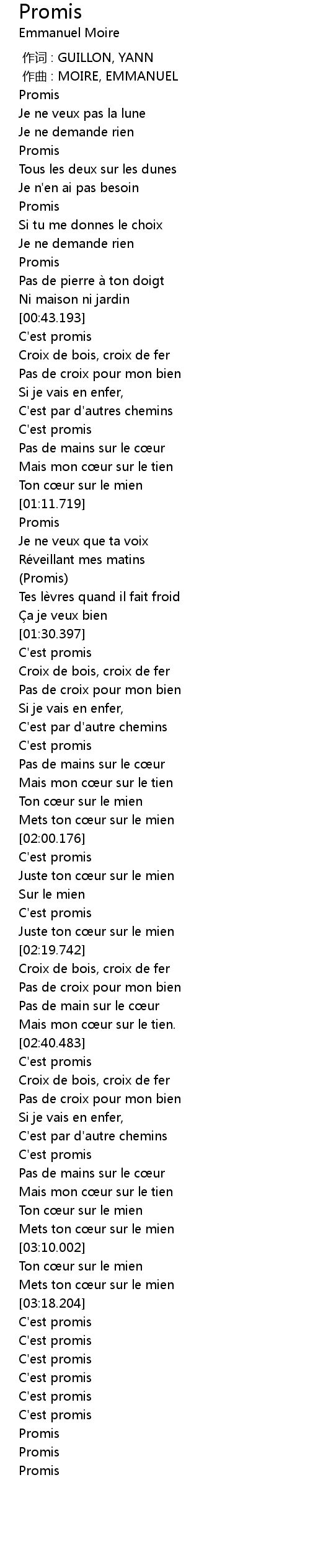 | [02:40.901] | C' est promis |