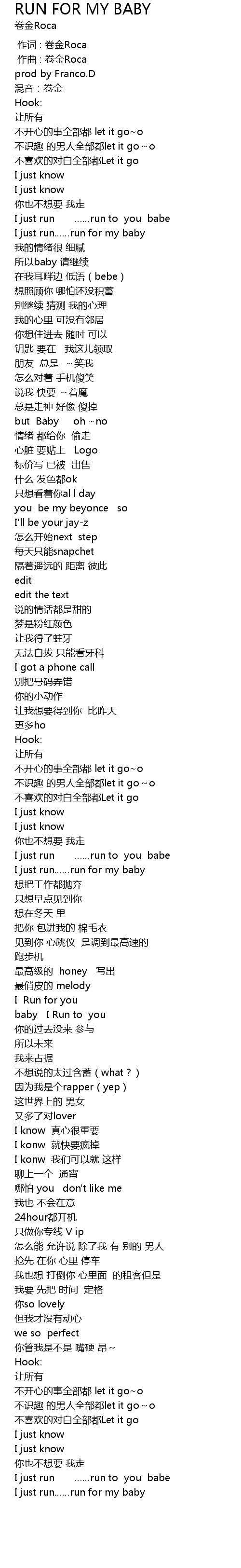 | 专辑 | RUN FOR MY BABY |