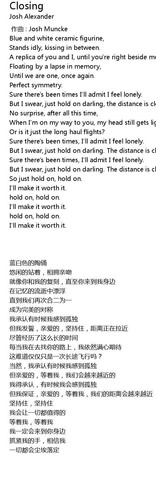 | [01:35.32] | But I swear, just hold on darling, the distance is closing. |