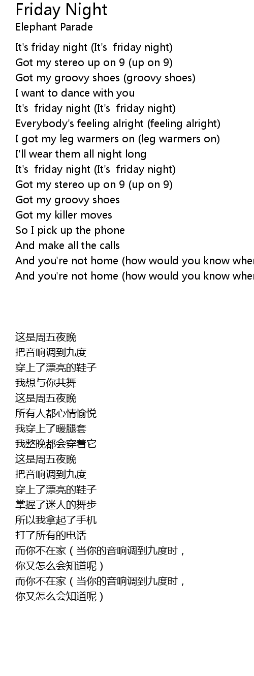 It's friday night (It's friday night) |
