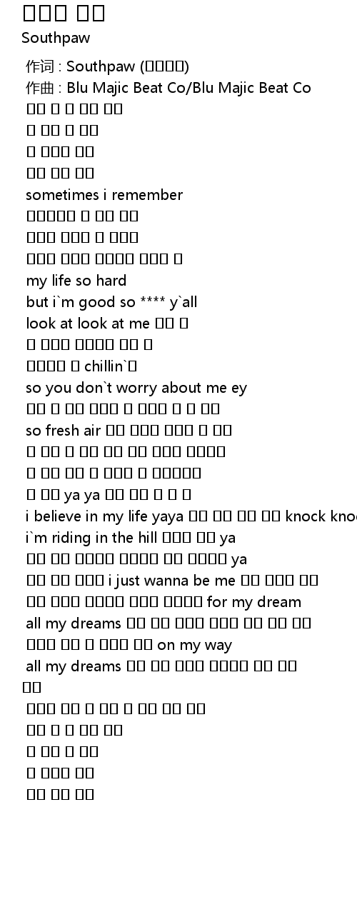 | [00:00.000] | 作词 : Southpaw (싸우스포) |