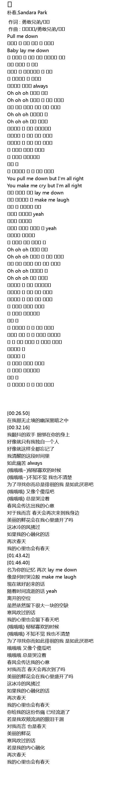 | [01:39.43] | 내 마음에도 봄 봄 봄이 올까요 |