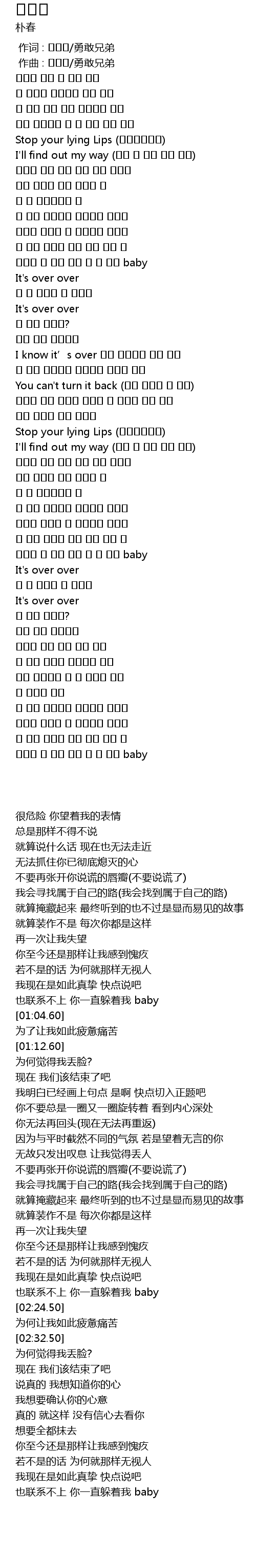 | [01:53.10] | Stop your lying Lips (거짓말하지마) |
