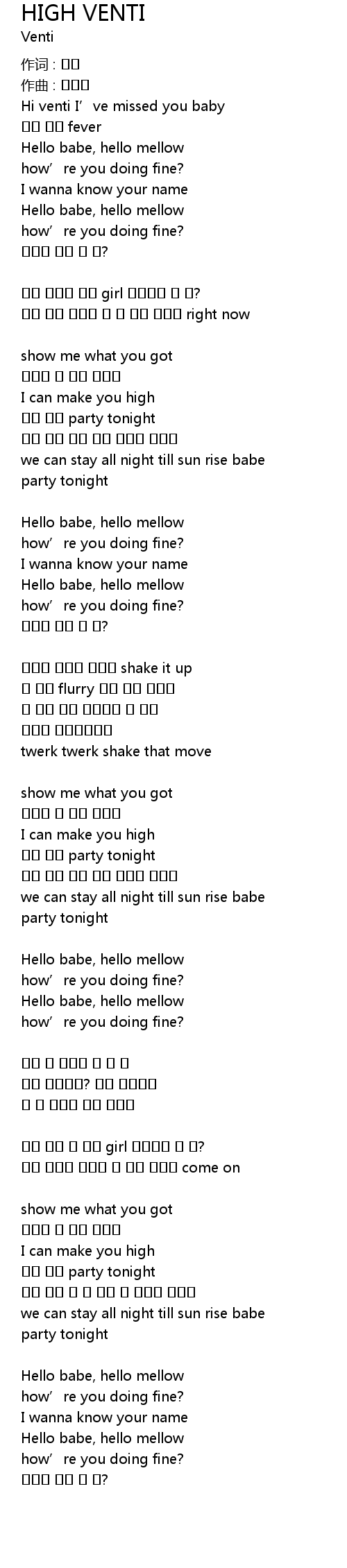 | 歌曲 | HIGH VENTI |