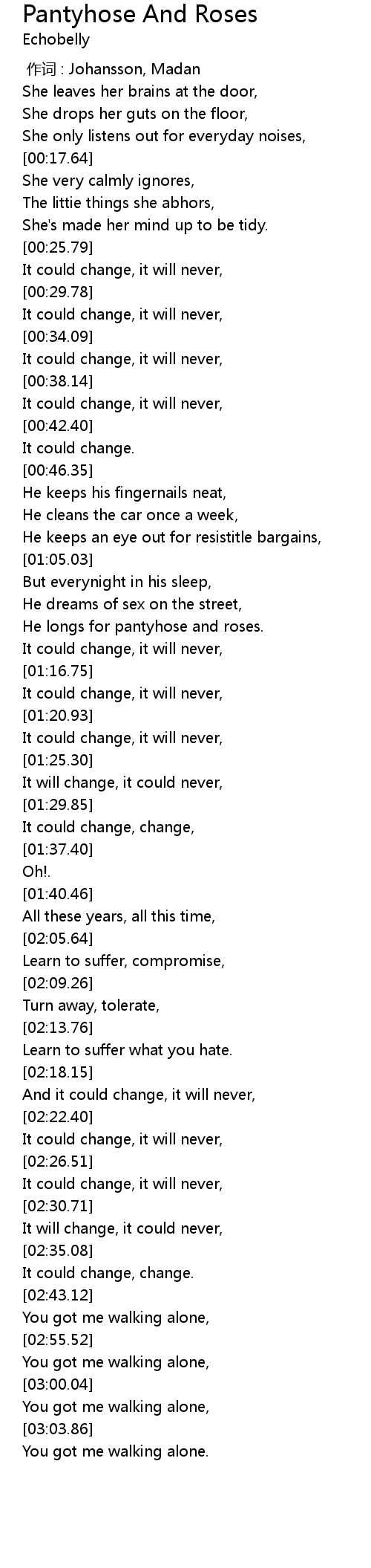 | [00:26.72] | It could change, it will never, |
