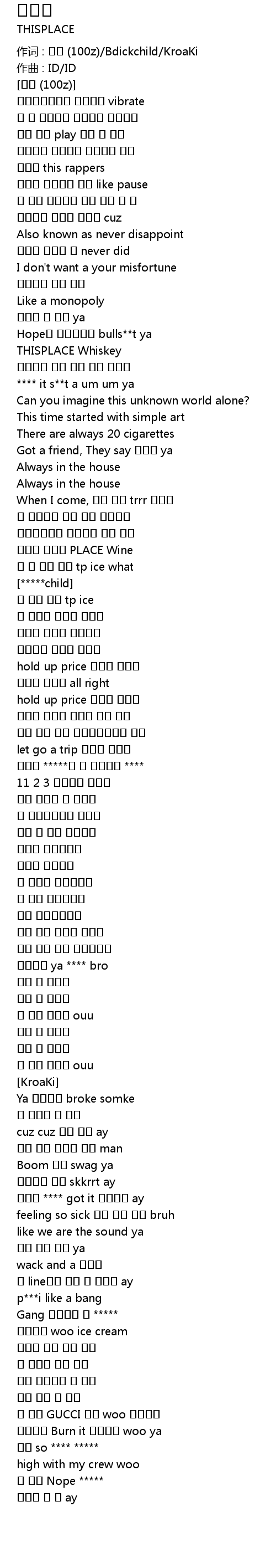 作词 : 백지 (100z)/Bdickchild/KroaKi
