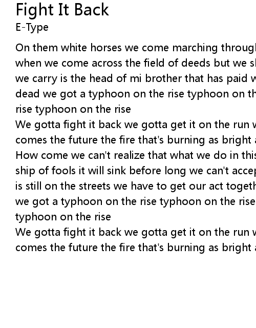 We gotta fight it back we gotta get it on the run we gotta fight it back here comes the future the fire that's burning as bright as the sun fight it back |