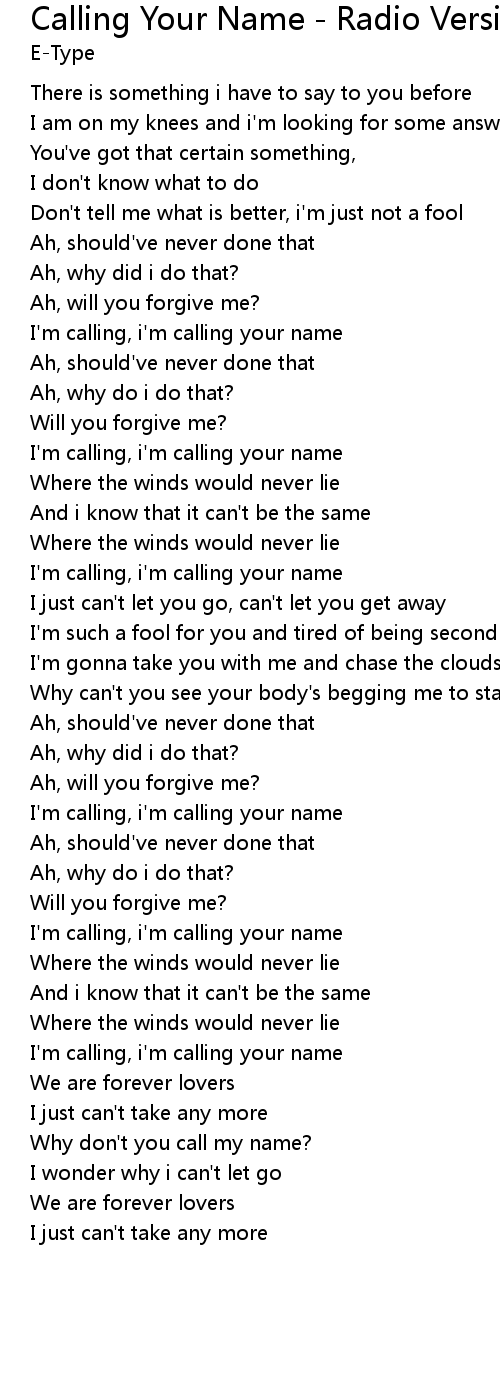 Calling Your Name - Radio Version 歌词