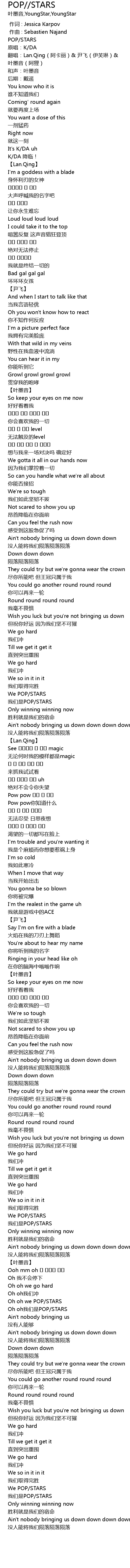 | [02:38.032] | Oh oh wǒ men shì POP STARS |