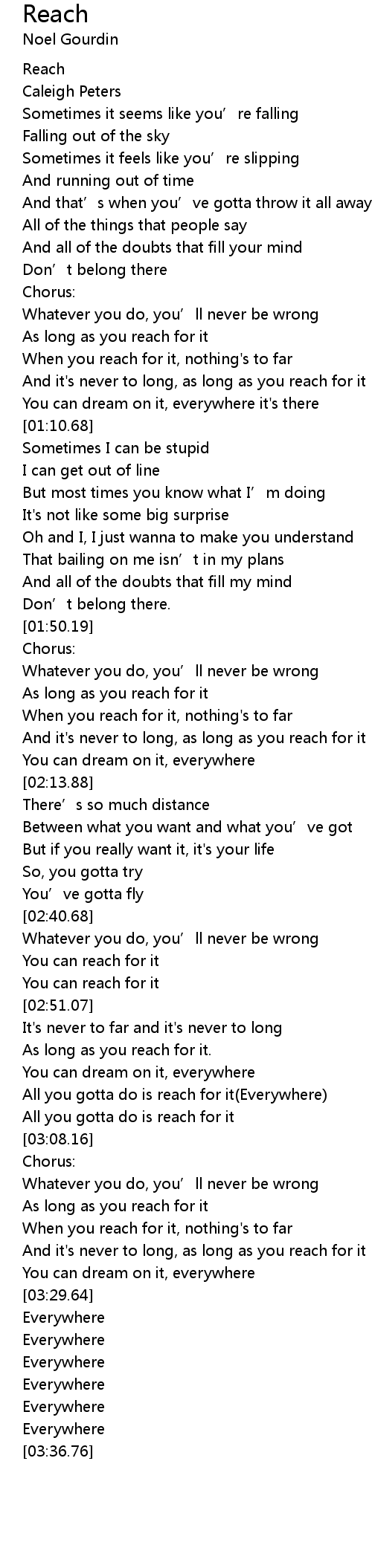 | [03:19.54] | And it's never to long, as long as you reach for it |