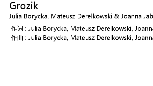 | [00:00.000] | 作曲 : Julia Borycka, Mateusz Derelkowski, Joanna Jabłońska |